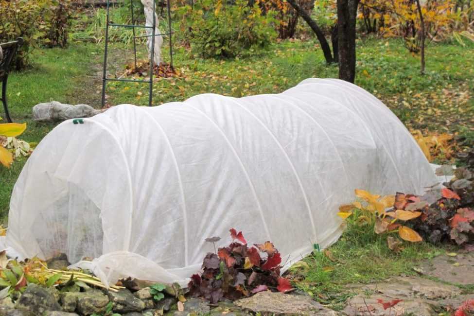 Второй вариант укрытия – сооружение над кустиком, пригнутым к земле, мини-теплицы. Подойдет деревянный ящик или каркас из сколоченных досок/веток, покрытый любым материалом – лутрасилом, агроволокном, мешковиной и т.д. Воздушное пространство внутри теплицы позволит растению полноценно «дышать», и защитит от холода.