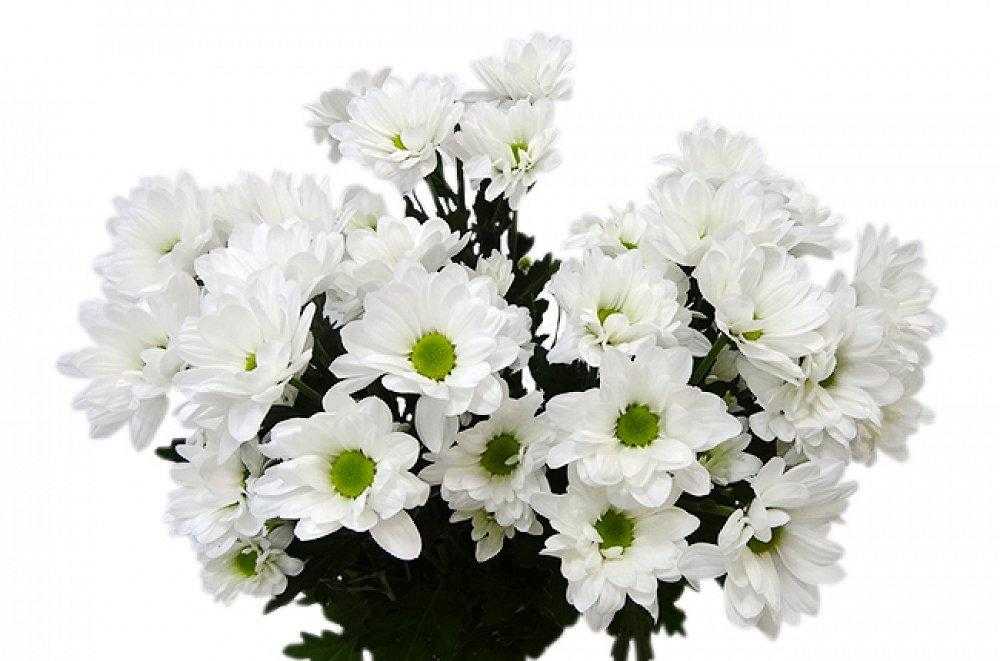 - Хризантема Бакарди Белая (Bacardi White Chrysanthemum) . Кипенно-белый окрас соцветий, представленный на фото выше, делает ее очень похожей на ромашку и популярной в составлении свадебных букетов. Отличие хризантемы кустовой Бакарди белой в окраске сердцевины цветка. Если у ромашки она желтая, то у Бакарди Уайт ― зеленая. Кроме того, лепестки хризантем более крупные и округлые.