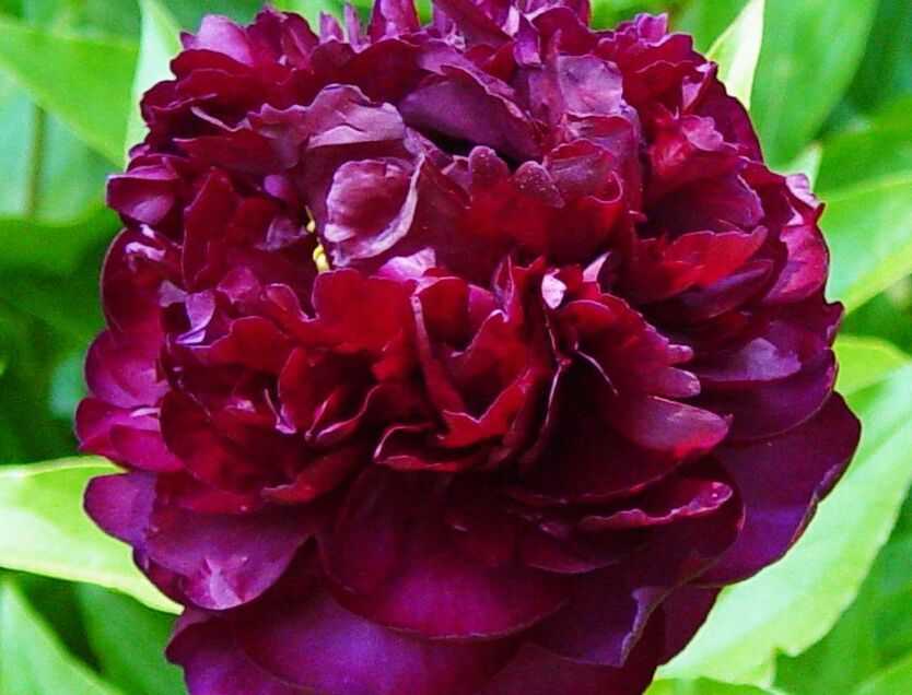 Третье место рейтинга в этой категории занимает сорт, который признан одним из самых темных в своей категории. Куст достигает в высоту 90 см. Насыщенные темно-бордовые цветы со временем становятся еще темнее. Оттенок однородный. Широкие лепестки, плотно прилегая друг к другу, образуют объемный шар, который хорошо смотрится на фоне ярко-зеленой пышной листвы. Стебли прямые, прочные, хорошо держат цветы, не позволяя склоняться вниз.