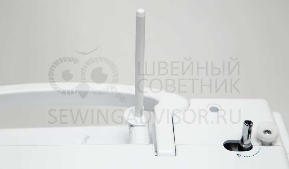 Для шитья двойной иглой устанавливаем дополнительный стержень для катушки (вертикальный).