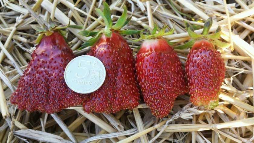 Сахаристость ягод составляет 5,8%. Вкус — сладкий. Дегустационная оценка: 5 баллов из 5. Средняя масса: 5–10 г. Максимальная: 20 г. Некоторые ягоды приобретают причудливую форму — они «оканчиваются» гребешком или рожками. И это одна из особенностей сорта.
