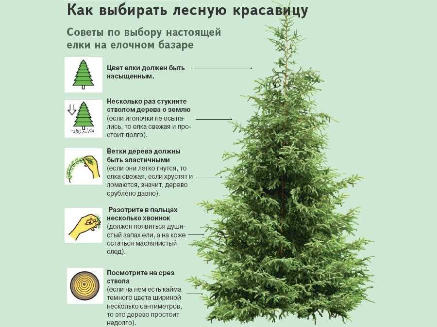 Выбирая хвойное дерево к празднику на рынке, следует обратить внимание на его общий вид. Деревце простоит дольше, если будут присутствовать следующие признаки свежести: