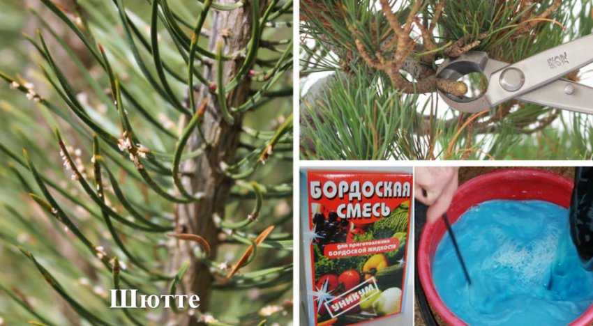 - убрать поражённую хвою с участка;