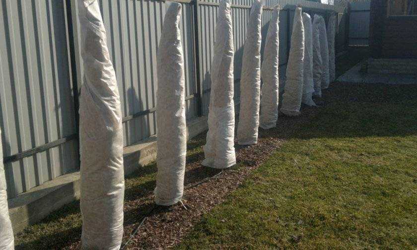 На зиму на даче деревце возрастом до 3 лет нуждается в укрытии. Ветви аккуратно прижимают к стволу по направлению роста, стягивают бечевой. После этого нужно закутать крону и ствол нетканым материалом. Приствольный круг обязательно укрывают мульчей слоем в 15 см, поверх кладут лапник.