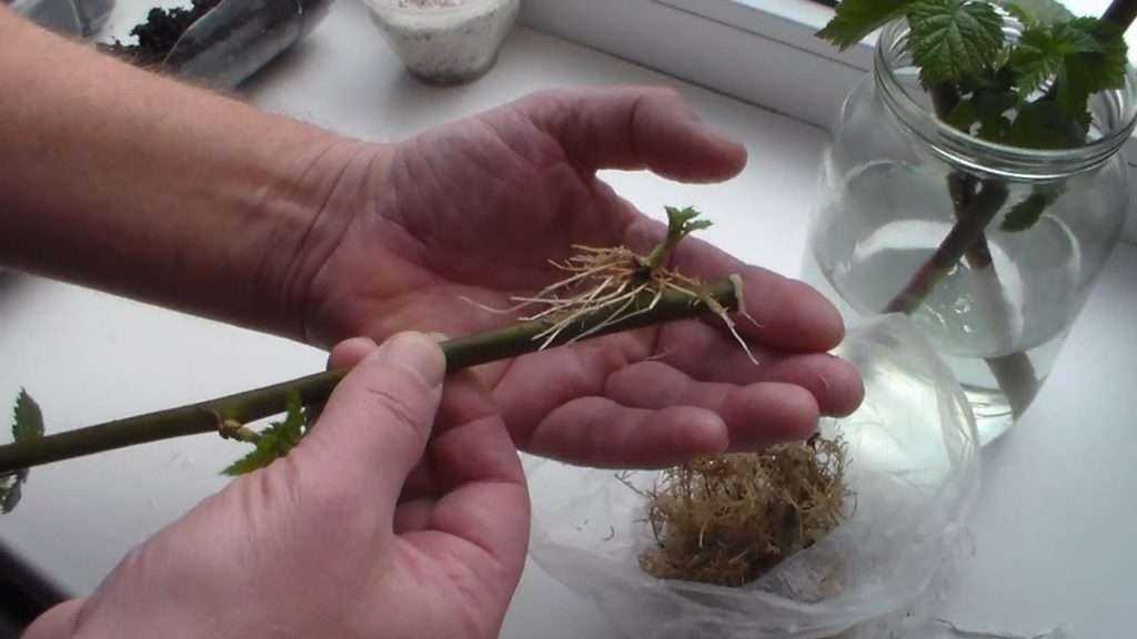 Листья также удаляют только в том месте, которое предназначено для укоренения. Можно также слегка перетянуть, чтобы стимулировать корнеобразование, немного ограничив питание от материнского куста или сделав кольцевание коры и надрез.