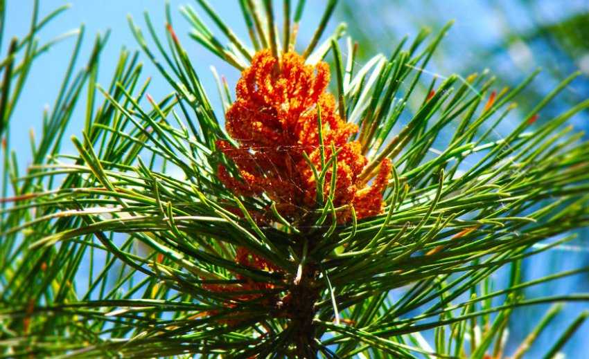 Часто поражает сосны шишечная ржавчина. Симптоматика: