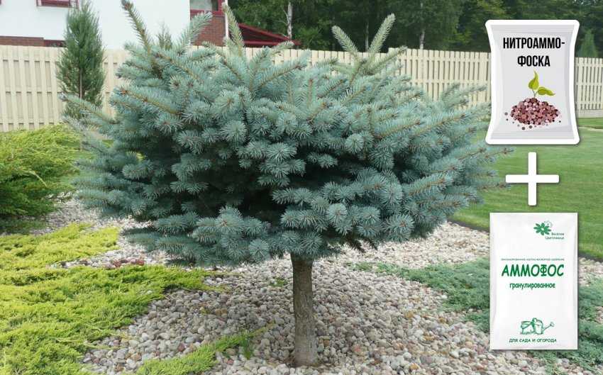 Для подкормки выбирают специальные составы для хвойных деревьев. Это позволит сохранить изумрудный цвет хвои и ее здоровый вид. Подкормки вносят не реже двух раз в год: весной, с началом вегетации, и летом.